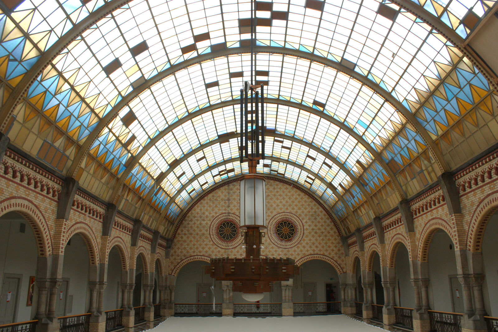 Het Grote Kantoor is gebouwd in de Um 1800-stijl, die populair was voor kantoorgebouwen en warenhuizen. In deze stijl wordt veel natuursteen gebruikt en de daken zien er vaak indrukwekkend uit. Dat is bij het Grote Kantoor in ieder geval zeker zo. Het dak van de hal is een gietijzeren koepel met glas-in-lood ramen omringd door zuilengalerijen.