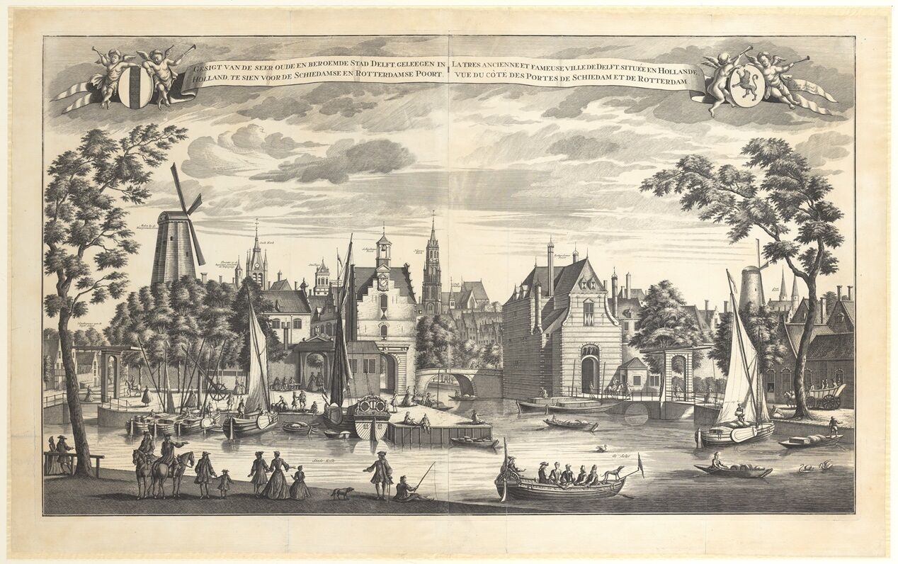 Afbeelding 2: Stadsgezicht met de Schiedamse en Rotterdamse Poort (circa 1730)